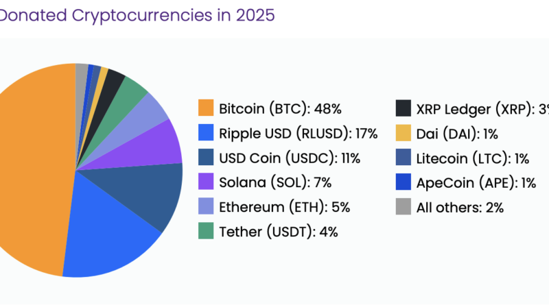 In its annual report released on Wednesday, the Giving Block said there had been a “major shift” in donations using stablecoins, particularly with Ripple USD (RLUSD) and Circle’s USDC (USDC). The platform reported that it had facilitated more than $100 million in crypto donations in 2025, with more than $32 million coming through USDC, RLUSD, Tether’s USDt (USDT), Dai (DAI), and other stablecoins.