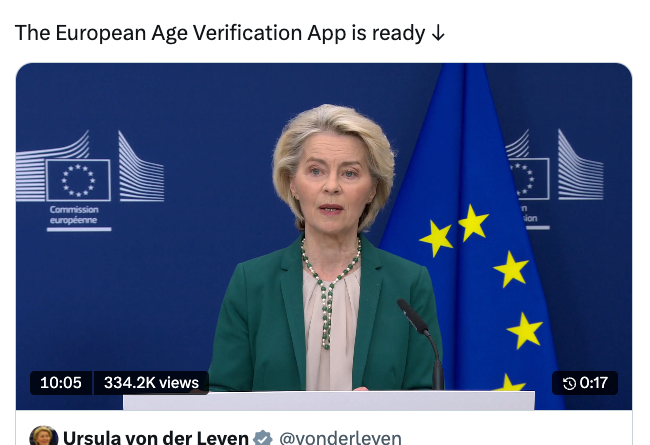 In a statement on Tuesday, EC President Ursula von der Leyen said the EU’s age verification app is “technically ready,” describing the tool as “completely anonymous” and claiming users can prove their age without revealing personal data or being tracked.