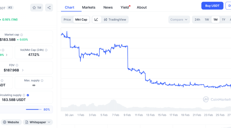 As Cointelegraph reported, USDt is on track for its largest monthly supply drop in three years, with circulating supply falling about $1.5 billion in February after a $1.2 billion decline in January, according to blockchain data. The contraction echoes the period following the FTX collapse in late 2022 and may point to tighter liquidity in crypto markets.