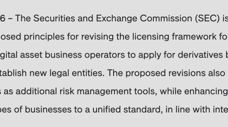Thailand’s Securities and Exchange Commission (SEC) is seeking public comment on proposed rule changes that would allow licensed digital asset businesses to apply directly for derivatives licenses, removing the requirement to establish separate entities.