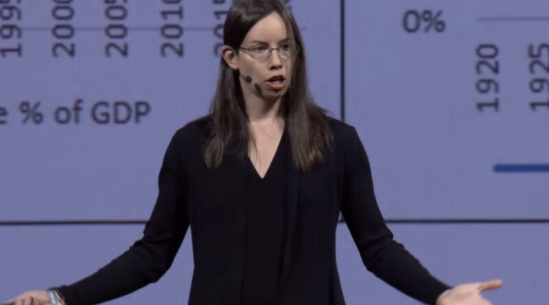Her first chart, sourced from the Federal Reserve’s FRED database, displayed a stark decoupling: the unemployment rate is down, yet the fiscal deficit has surged past 7% of GDP. “This started around 2017, went into overdrive during the pandemic, and hasn’t corrected,” Alden said. “That’s not normal. We’re in a new era.”