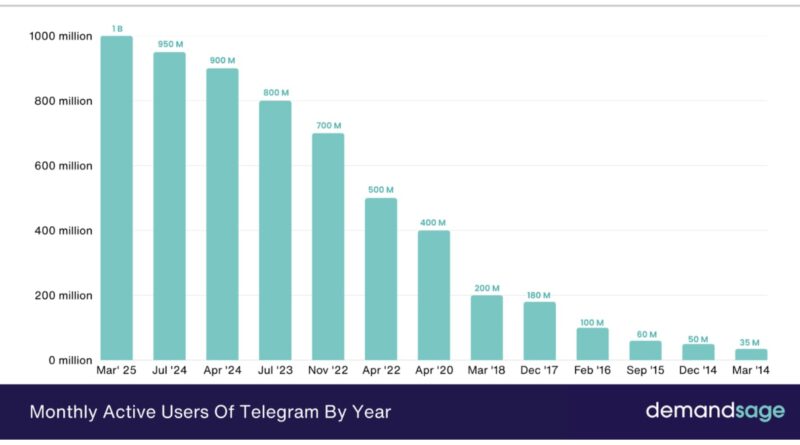 In March, Telegram’s monthly active users reached 1 billion, doubling in less than three years. Source: Demandsage