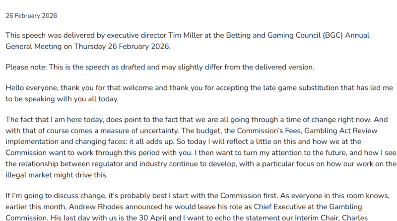 Tim Miller, the commission’s executive director for research and policy, said Thursday that the regulator wants to examine “the potential path forward” for allowing “cryptoasset to be used as a consumer payment option for licensed and regulated gambling in Great Britain.” Miller made the remarks at the Betting and Gaming Council’s annual general meeting in London, according to his published speech.