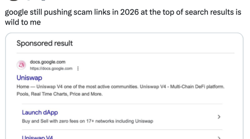 Scammers are increasingly buying ads on popular search engines targeting keywords like “Uniswap,” so when crypto users search for it, the top result looks official.