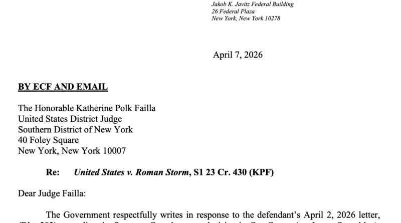 The US Attorney’s filing followed a Thursday notice from Storm’s lawyers saying they intended to use a 2026 Supreme Court case, Cox Communications, Inc. v. Sony Music Entertainment, as part of an argument about the Tornado Cash co-founder’s intent to participate in the crimes of which he is accused: conspiracy to commit money laundering and conspiracy to violate sanctions.