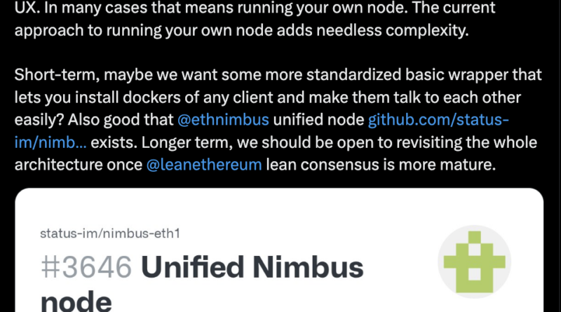 “I feel like at every level, we have implicitly made this decision that running a node is this oh so scary DevOps task that it is ok to leave to professionals,” Buterin said in a post on X. He continued: