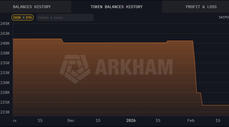 Buterin’s wallets tracked by Arkham held about 241,000 Ether (ETH) in early February, before a series of outflows reduced the combined balance to 224,000 ETH on Tuesday.