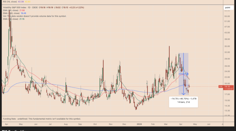 The CBOE Volatility Index (VIX), a preferred Wall Street metric to measure investor sentiment and market risk, dropped by over 45% in under a month. For Bitcoin (BTC), this could be a significant bullish signal.