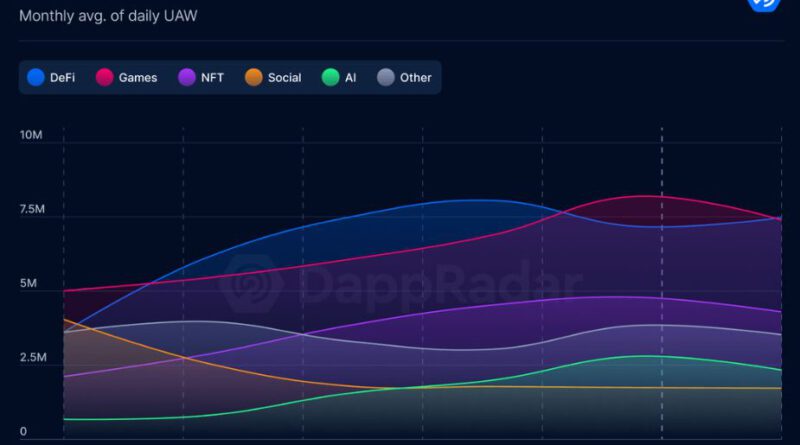 Starting off the year 2025, the DApp ecosystem recorded a strong performance with 26.7 million daily Unique Active Wallets (UAW) in all the sectors giving a good deal of massiveness to the technology. This is clear evidence of the spread of decentralized applications. Although DeFi has still been a small front-runner over gaming in terms of total market domination, the difference between the two sectors has been reduced to just 1-percent. Therefore, the pace of blockchain gaming will likely return to number one slot in blockchain technology use cases.