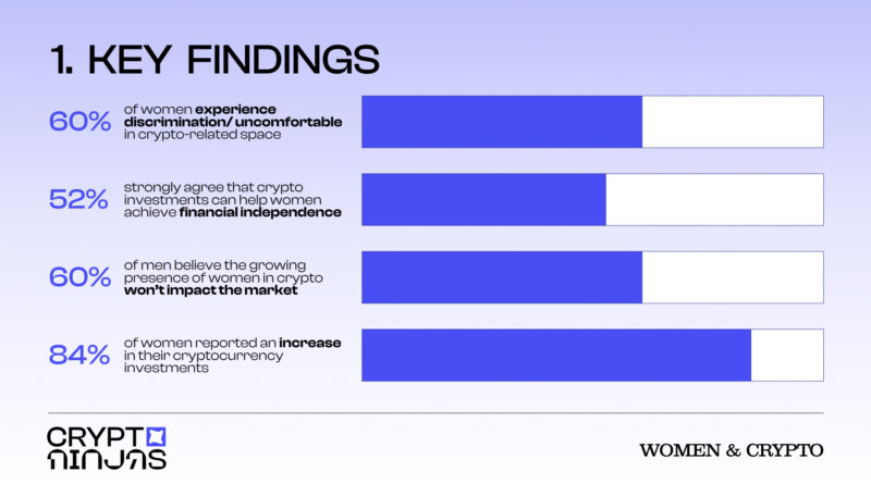 - 60% of women experience discrimination or feel uncomfortable in the crypto-related space