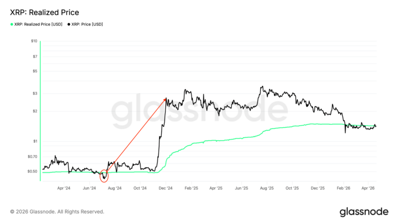 This means XRP is holding above its realized price, the average cost of all coins based on when they last moved, currently at $1.41, according to data from Glassnode