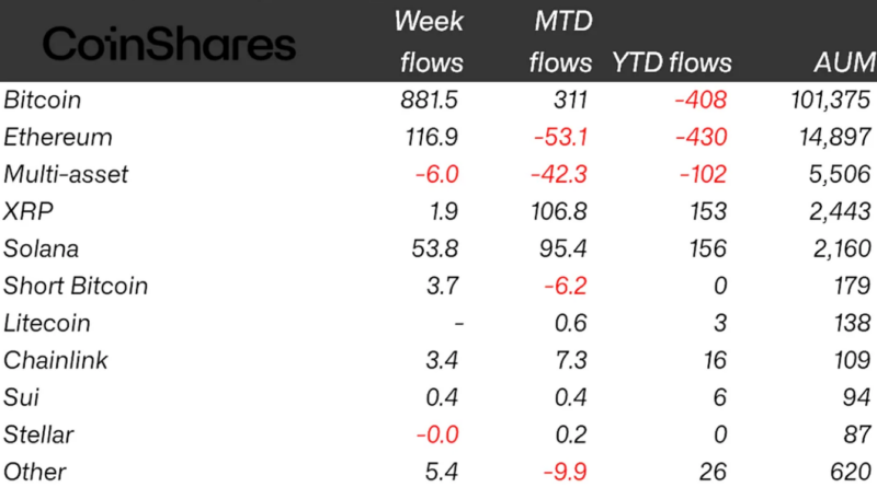 Institutional demand for XRP investment products has been strengthening, according to data from CoinShares.