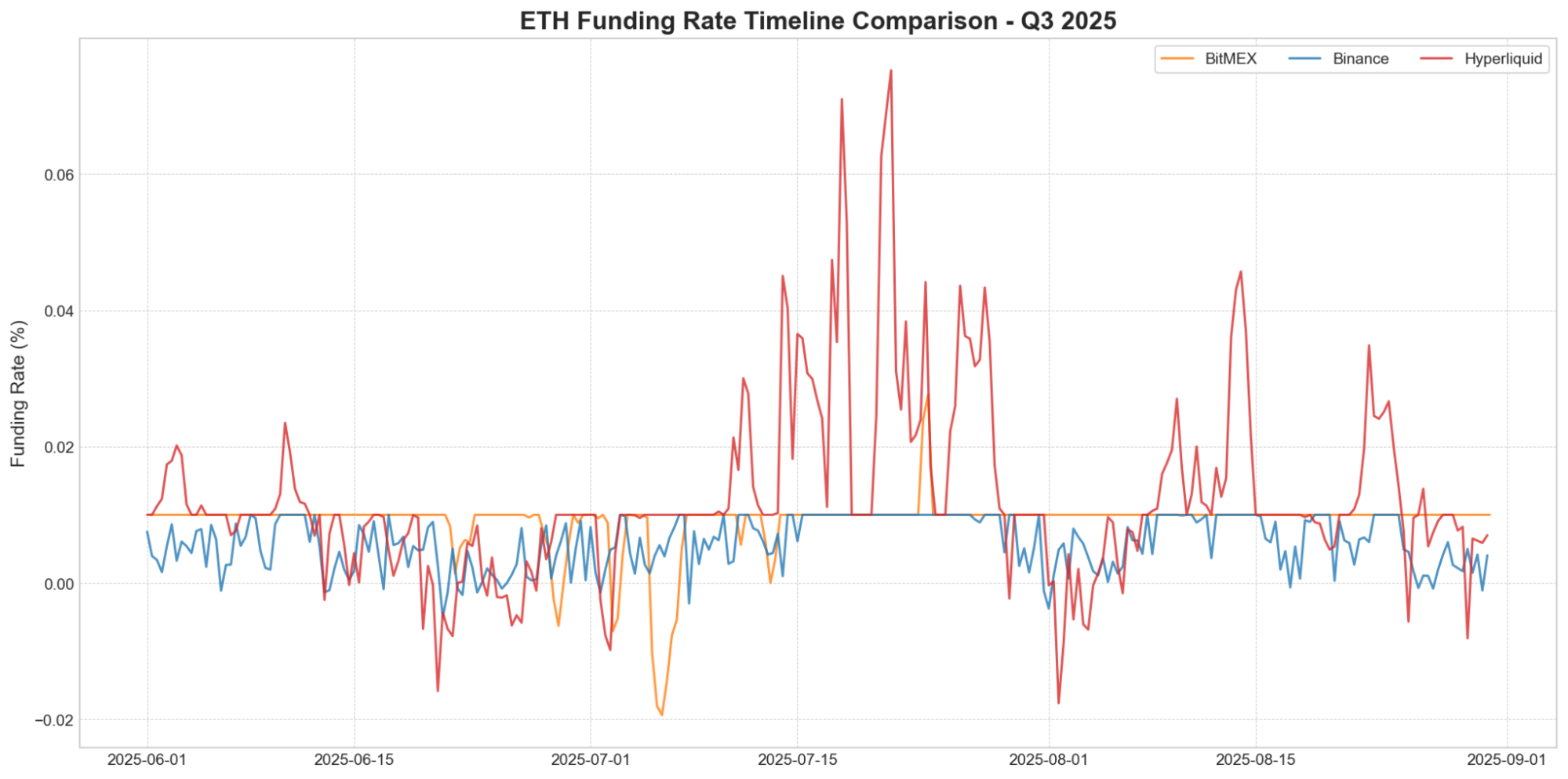 Analysis of Ethereum (ETH) Funding Rates on BitMEX, Hyperliquid, and Binance, and Hyperliquid
