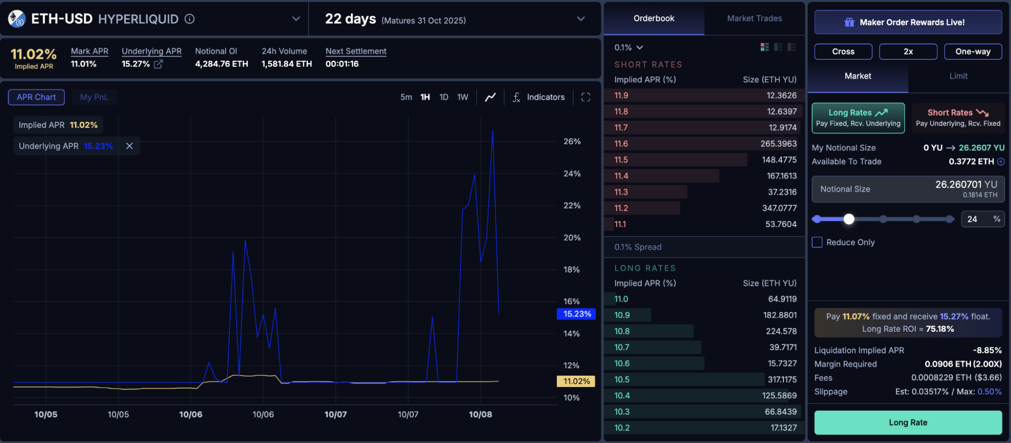 For example, a thesis could be: “The implied rate on Hyperliquid is currently elevated due to short-term FOMO, and I expect it to compress back towards its structural anchor.”